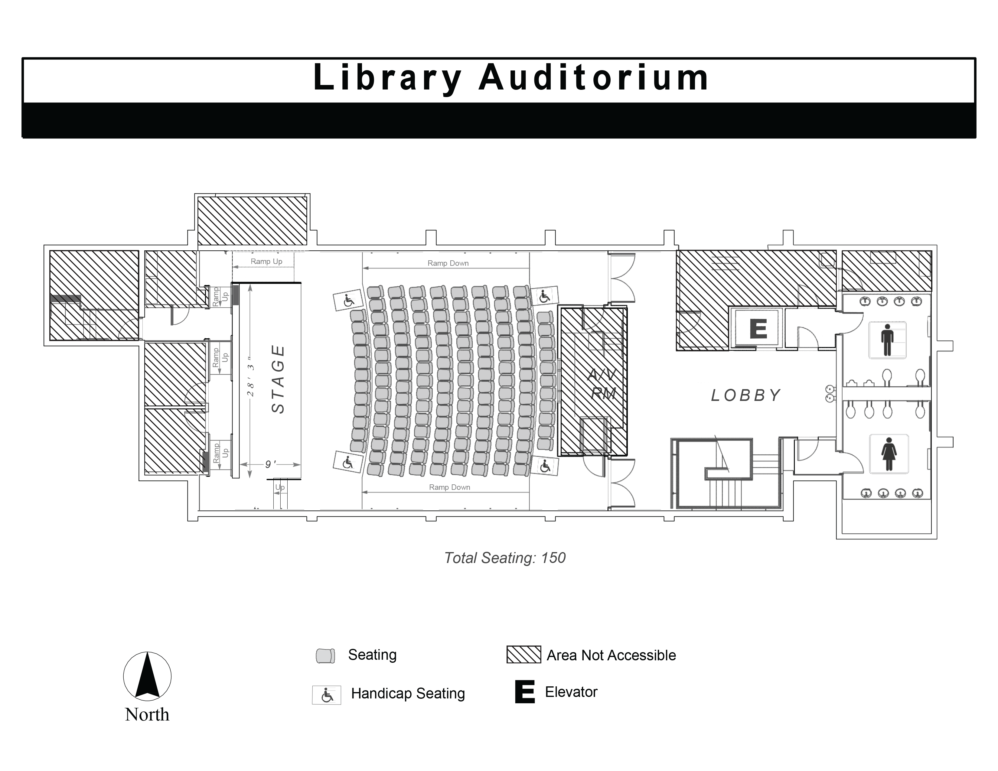 - 150-person maximum seating capacity (Note: 50-person minimum required to reserve the Auditorium)